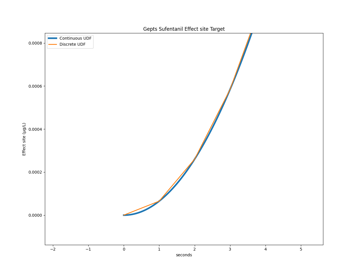Now this precision comes at a price. If we consider the Gepts model with the infusion scheme presented in the previous post with three target changes, the original code takes on average 3.19 seconds on my laptop. With the continuous UDF it takes 16.21 seconds on average. This is a real hit on performance and makes it unusable for TCI. But maybe there is something we can do about that.